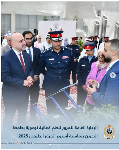 نظّمت الإدارة العامة للمرور، بالتعاون مع جامعة البحرين، فعالية توعوية ضمن فعاليات أسبوع المرور الخليجي 20...المزيد