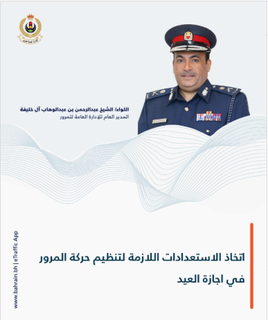 رفع اللواء الشيخ عبدالرحمن بن عبدالوهاب آل خليفة المدير العام للإدارة العامة للمرور أسمى آيات التهاني والتبريكات إلى حضرة صاحب ...المزيد